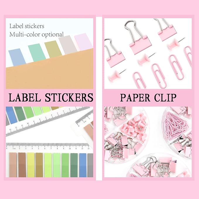 - Easy To Carry- You can put these pink desk accessories in the drawer or desk at will, it won't take up too much space. The clips are equipped with a lattice storage box for easy organization use and storage.You can also put school supplies set in your handbag or schoolbag and take them anywhere.