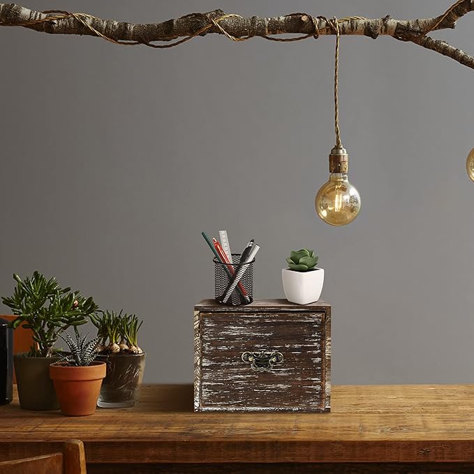 - Wooden Desk Organizer with Drawers: This handmade square wooden desktop drawer is farmhouse vintage style, dark brown wood comfortable feel, we have several series. You can buy it individually or in combination.