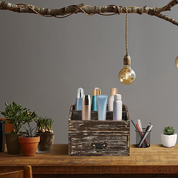 - Wooden Desk Organizer with Drawers: These 2pcs/set handmade wooden desktop drawer & vintage detachable wood desktop storage caddy farmhouse vintage style, dark brown wood comfortable feel, we have several series. You can buy it individually or in combination.