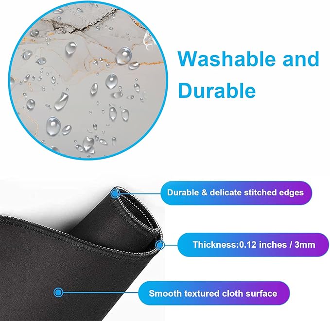 - Washable stitched edges: The latest stitching technology ensures that the mouse pad will not fray or deform during use. The stitched frame ensures that it won't fray or come off like other mouse pads, making it easy to use. Ordinary stains can be wiped off with a damp towel. If you use it for a long time, you can wash it in water, which is very convenient, durable and easy to carry.