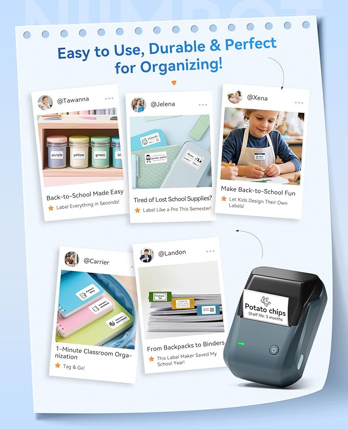 NIIMBOT B1 Label Maker Machine with Tape, Thermal Label Printer Easy to Use for Office, Home, Business, 2 Inch Label Maker with 2'' x1.18'' Labels