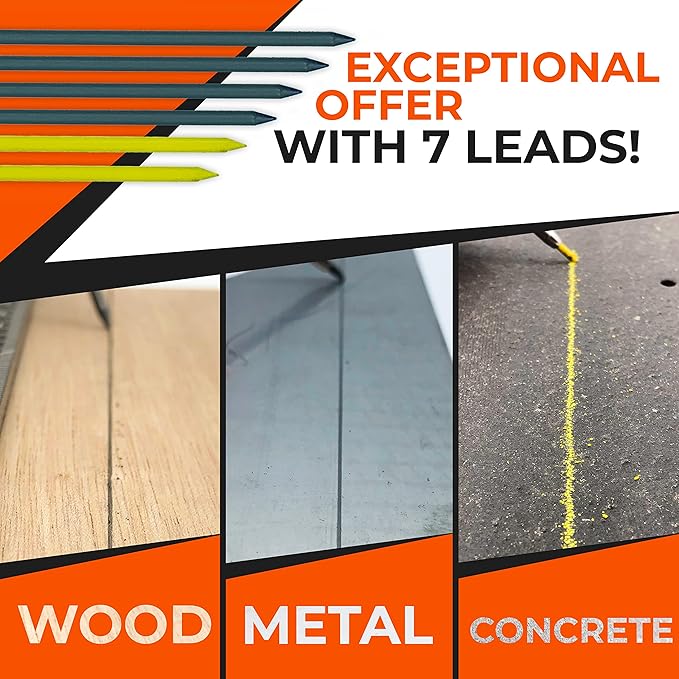 - WRITE ON WOOD, METAL BUT ALSO CONCRETE AND TILES: Are you having a hard time tracing on concrete and metal? Writing on a dark surface is no longer a problem thanks to the yellow leads provided with the construction pen! What's more, the included leads are perfect for tracing anywhere and stronger than dry leads. This makes it the ideal construction pencil for carpenters, masons, and the like, as well as for all other trades!