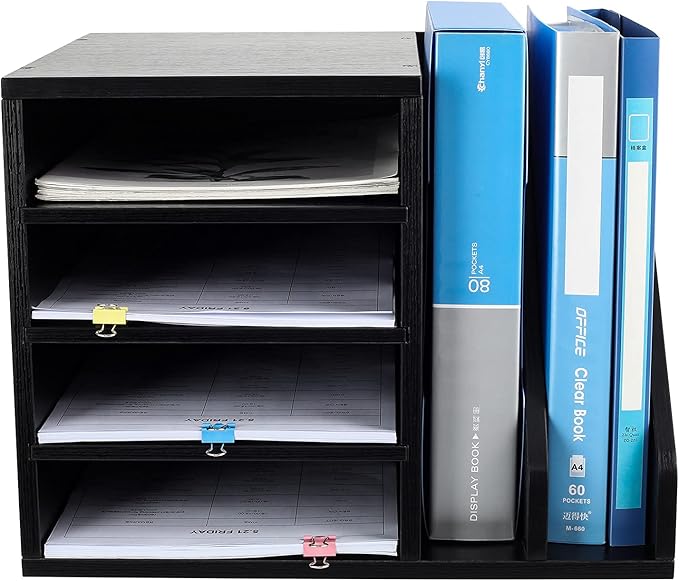 - ▶Multifunctional Desktop Organizer. Total 6 compartments, great for storage books, documents, file folders, magazines, notebooks, mails, letters and other papers products. The top of left side can also put some small office supplies and mini potted plants or succulents