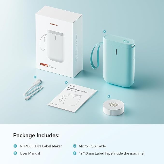 - 【Package Includes】This D11 label maker comes with a roll of white label paper 0.5*1.6 inches, a Micro USB charging cord 10 inches and an English user manual. With compact size & 1500mAh long-endurance battery to save your time and money, a perfect present for Father's day/school gift for kids.