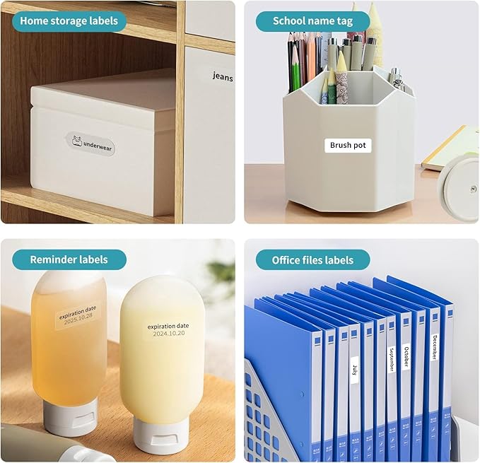DEEPIN Label Maker Machine Portable Bluetooth Label Maker with Tape, Thermal Label Printer Multiple Templates for Phone, Mini Label Sticker Printer for Business Office Organization (White)