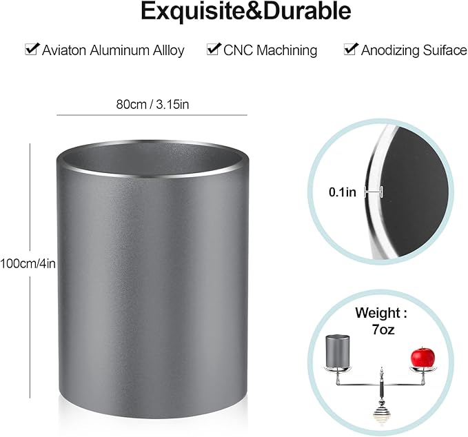 - 😊【Large Capacity】Diameter: 3.15inch/8cm, Height: 3.93inch/10cm; Weight: 6.2Ounce /176g. This large metal pen holder cup can accommodate about 20 pens.
