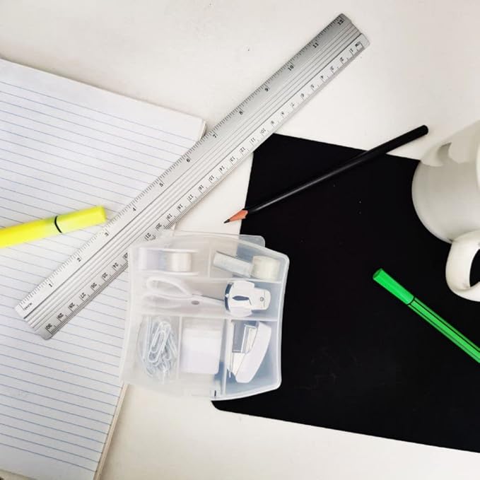 - WHAT'S INCLUDED: Our school and home office supplies kit include a pencil sharpener, scissors, tiny stapler, staples, staple remover, mini tape dispenser, tape refill, paper clip, and a transparent plastic box.