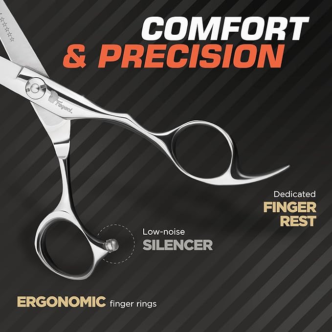 - Versatile Cutting Excellence - Master every style with our all-purpose hair shears, perfect for any hair type. Achieve blunt, slide, and textured cuts with ease through superior blade length, ergonomic design, and precision edges for all cutting demands.