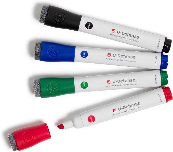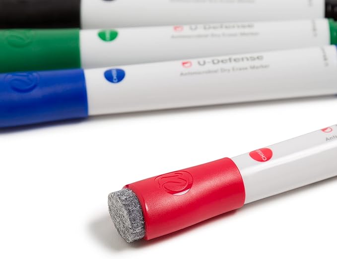 - QUICK CORRECTION CAP: Make corrections a breeze with the built-in felt erasers on the caps that allow for clean erasing without residue; featuring a contoured anti-roll cap shape, which prevents the markers from rolling off any flat surface or tray