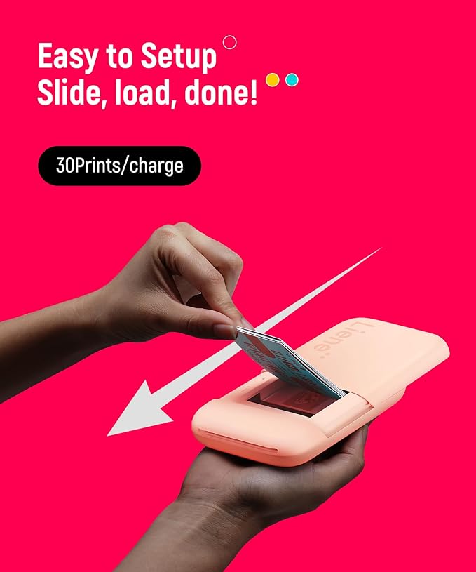- [Easy Connection & Fast Printing] This bluetooth picture printer for iphone and Android phones can be connected quickly and stably via Bluetooth 5.0. Just slide the cover and change the photo paper easily with one hand. Connect the printer to your phone via Bluetooth, then this smartphone printer will print, you can select the image you posted on your social media or save it on your phone, and after 45 seconds, it will become a tangible 2x3-inch photo.
