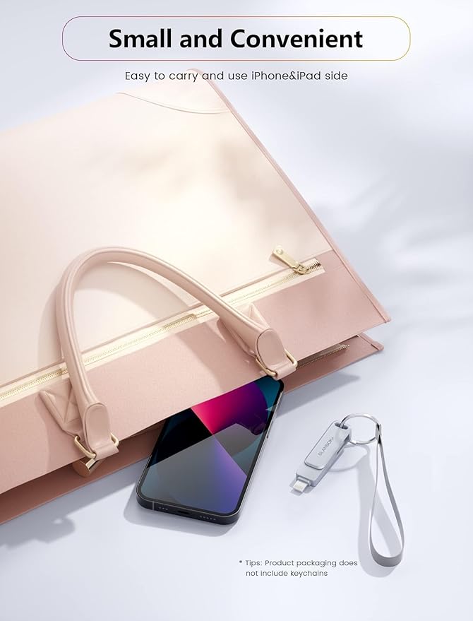 - MFi certified high-quality iphone flash drive: The MFi-certified usb flash drive for iphone can ensure high quality, and also provide you with excellent performance, allowing you to store data more safely! Made of high-quality metal materials and advanced chip technology, it has excellent waterproof, dustproof, anti-drop, high temperature and anti-magnetic properties. The keychain design of the thumb drive also allows you to carry it with you to prevent loss.