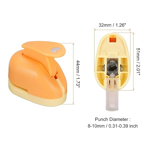 - Color: Orange; Material: ABS, Metal; Number of Punched Holes: 1; Number of Sheets: 1; Punch Diameter: 8-10mm / 0.31-0.39 inch; Total Size: 32 x 51 x 44mm / 1.26 x 2.01 x 1.73 inch(L*W*H)
