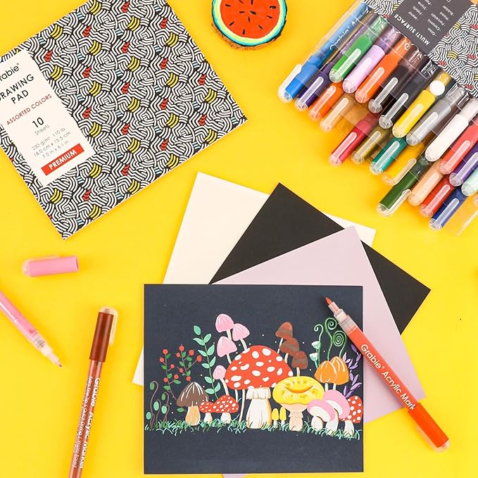 - PREMIUM ACRYLIC PAINT PENS, PERFECT FOR ALMOST ANY SURFACE: From fine art and illustration layouts and design, for any graphic application these colorful paint markers are perfect, ideal for artists, amateur hobbyists and painting lovers. You can easily to use these vibrant paint pens on paper, stone, canvas, rocks, wood, metal, plastic, rubber, glass, ceramic, plaster, foam, fabric and so on. Both beginners and professionals can better release their creativity on painting.
