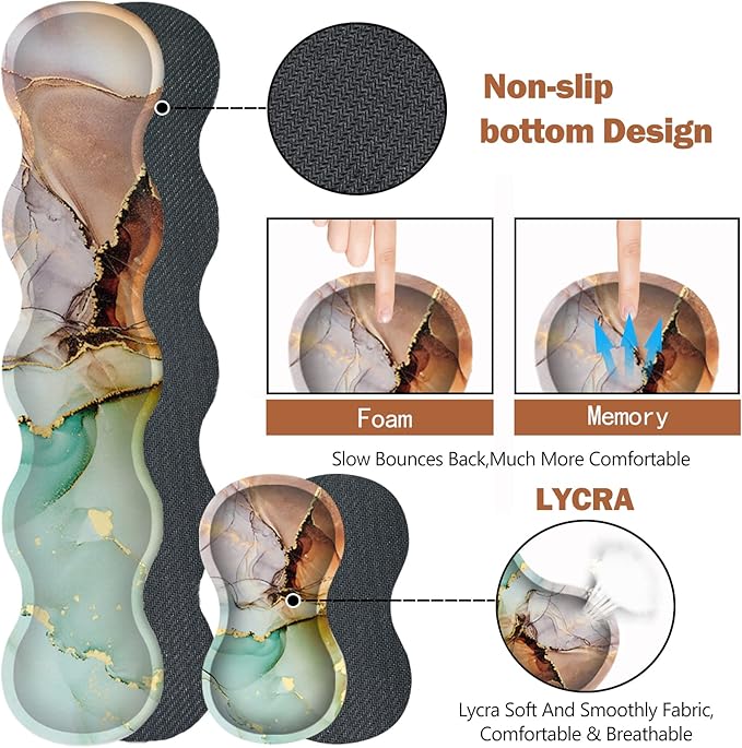 - 【Ergonomic Design】Designed with memory foam and soft smooth material to the pads, lightweight comfortable and durable for your daily work life. This gaming mouse pad wrist support set is contoured ergonomically to keep arms, wrists, and hands from getting sore while working and gaming for long periods of time, maximum reduce wrist stress and tiredness.