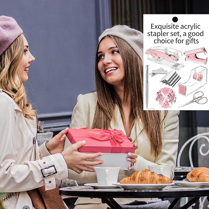 - You will get: you will get a set of delicate office supplies, including a stapler, a box of staples, a tape dispenser, a staple remover, a box of clips, a pen, and a scissor to meet your daily office needs; Beautiful and stylish style in the office, home, can make people feel luxurious