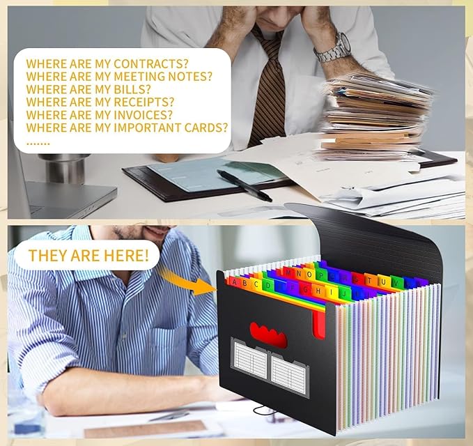 - π MULTIFUNCTIONAL DOCUMENT FILE: It can save your documents, receipt vouchers, paper, coupons, etc. The simple and stylish expandable folder is the perfect file organizer for home, office, school and when going out.
