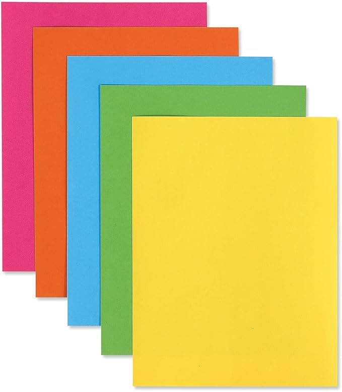 Neon Paper Pack of 150 (30 of Each Color), 8-1/2-x-11 Inches, 110 GSM 29 lb Colorful Computer Printer Paper