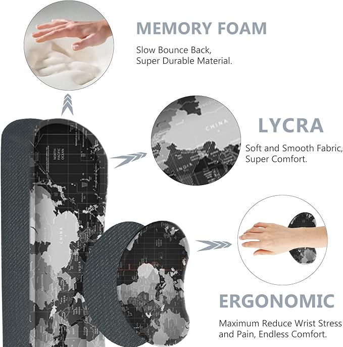 - 【ERGONOMIC DESIGN】: Keyboard wrist rest & mouse wrist support designed with comfortable memory foam and breathable material fabric, perfectly support your wrist while typing or sliding, minimizing relieve pressure and pain of your wrist, and maintaining wrist comfort and normal blood circulation.