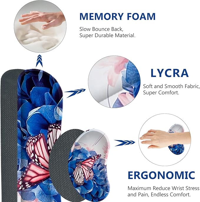 - 【ERGONOMIC DESIGN】: Keyboard wrist rest & mouse wrist support designed with comfortable memory foam and breathable material fabric, perfectly support your wrist while typing or sliding, minimizing relieve pressure and pain of your wrist, and maintaining wrist comfort and normal blood circulation.