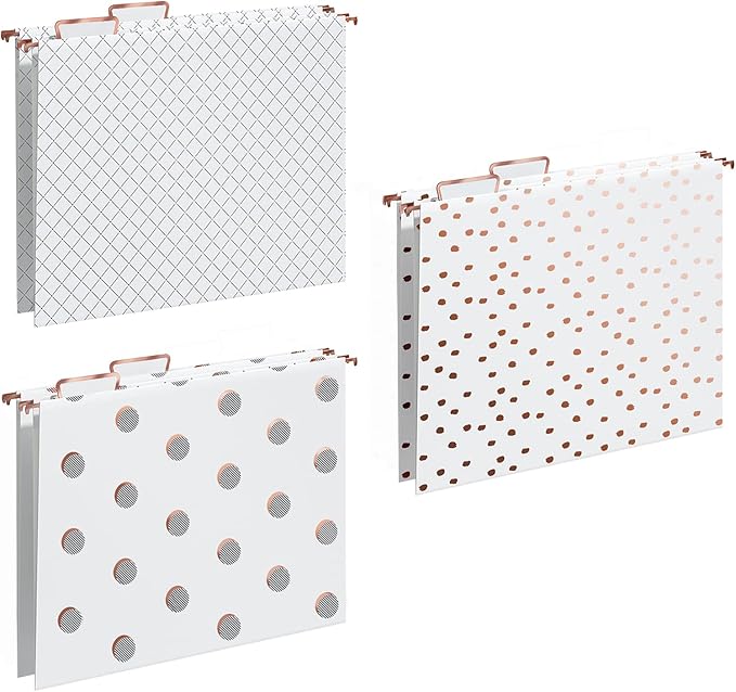 - Gold Foil Design - Unlike traditional file folder, our rose gold foil of hanging file folder and tabs can match the gold desk organizer, and bring fashion and a modern atmosphere to your desk, create a more luxurious and elegant space