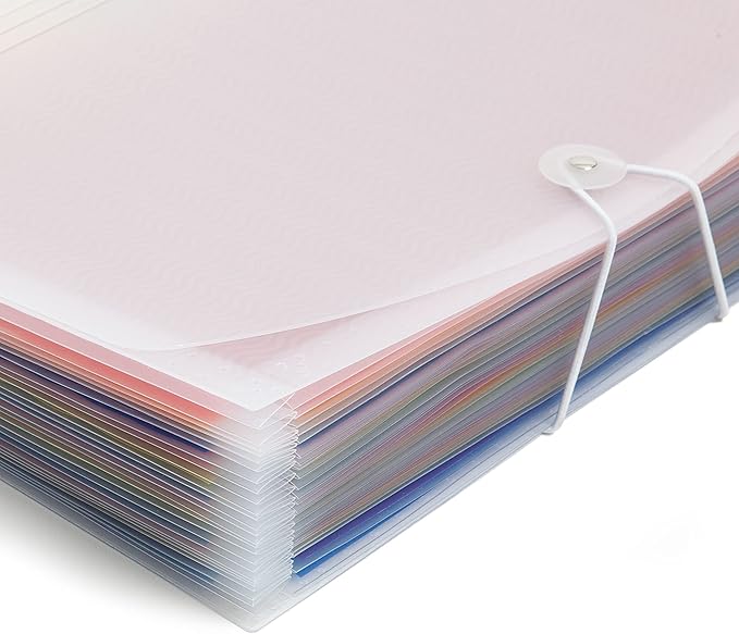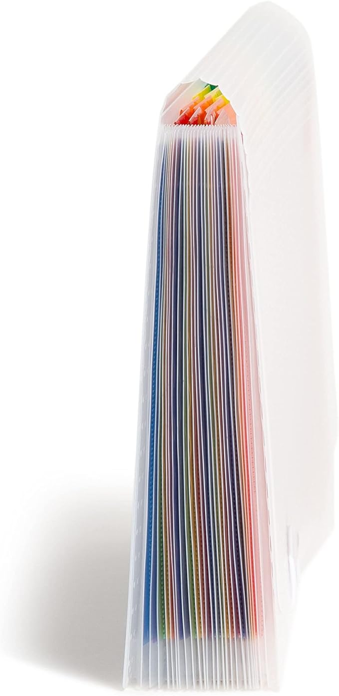- Includes 1 letter size (13” W x 9-3/4” H) clear poly expanding file with 24 pockets and colorful dividers to keep your documents sorted