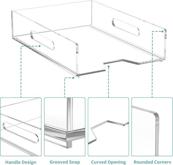 - 【Clear to See】Our paper letter tray is made of thick premium acrylic, which features durable and sturdy to use for a long time. The transparent look looks very clean and sleek, and it is easy for you to see the contents of the storage box clearly and intuitively.