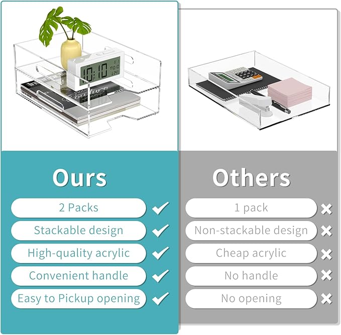 - 【Acrylic Paper Tray】Each package comes with 2 pack vertical stackable tray which measures 12.3x8.7x2.7 inches. The right size makes it appropriate for containing your files and documents, which will be an ideal accessory for you