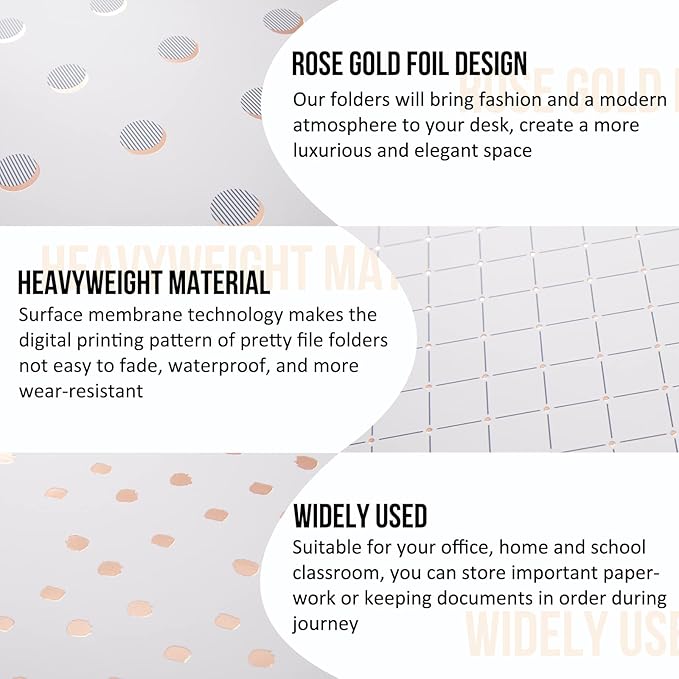 - Gold Foil Design - Unlike traditional file folder, our rose gold foil of cute file folder can match the gold desk organizer, and bring fashion and a modern atmosphere to your desk, create a more luxurious and elegant space