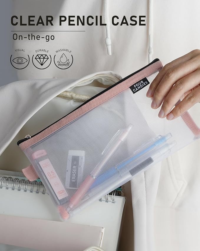 Four Candies Mechanical Pencil Set with Case, 6PCS Aesthetic Mechanical Pencils 0.5 & 0.7mm with 360PCS HB Lead Refills, 12PCS Erasers, Cute Mechanical Pencils for Writing, Drawing and Sketching
