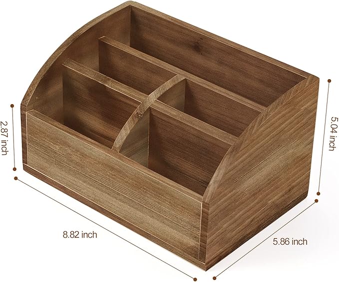 - Size: This wood organizer box size is 8.8 x 5.9 x 5.04 inches, the whole product is divided into 5 compartments, which is convenient for placing various supplies, pens/pencils, mail, bills, books, tape, stickers, and envelopes.