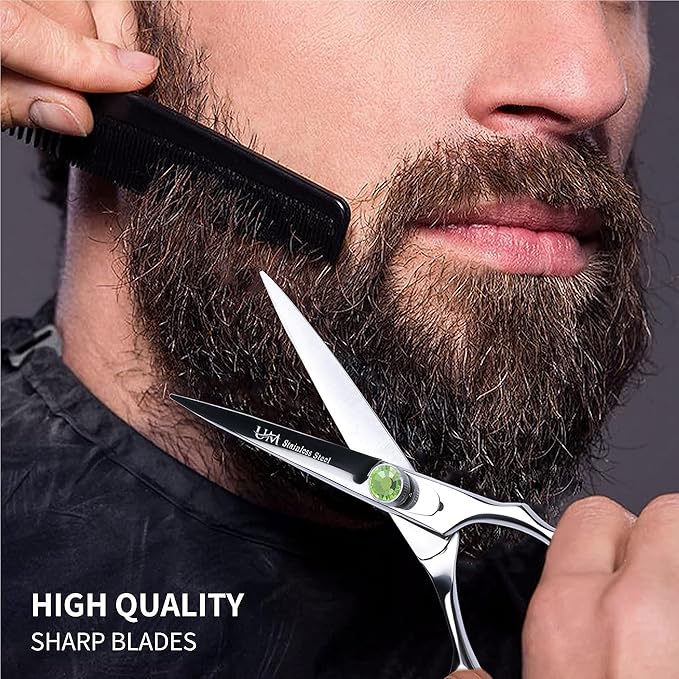 UM Supplies Scissors 6.5 | Premium Barber Shears For Hair Cutting | Multiple Purpose Cutting Scissors | Haircut Scissors For Salon I Women | Mens | kids I Pets | Silver-Green