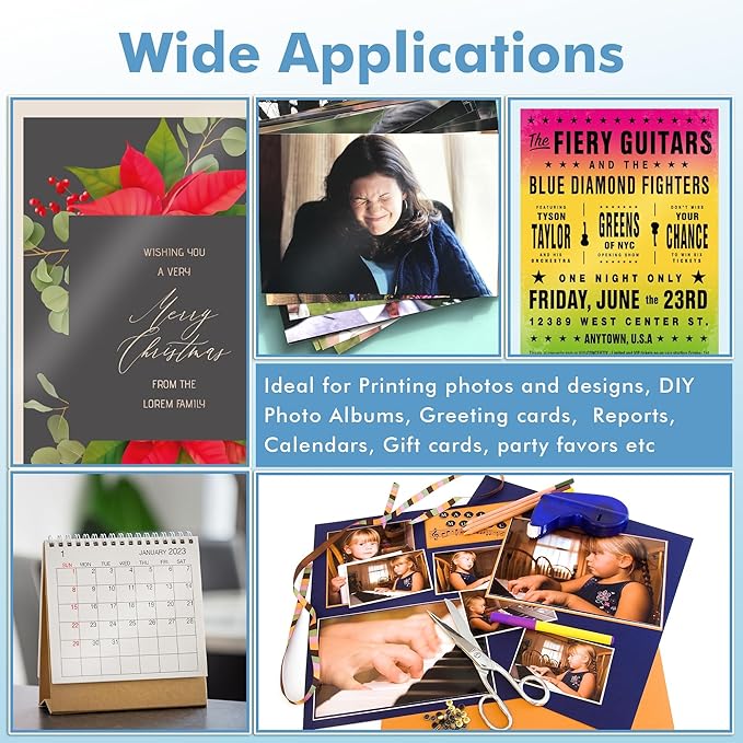 - Ideal for Printing Photos and Designs, DIY Photo Alumbs, Greeting cards, Reports, Calendars, Cards, Party Favors etc