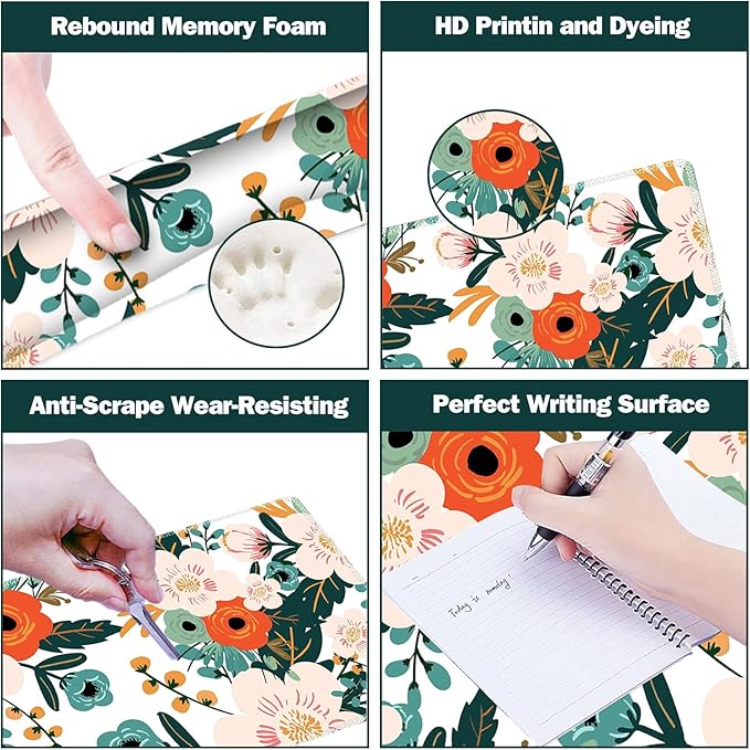 ARTSO Extended Gaming Mouse Pad Set, Keyboard Wrist Rest Support Pad + Wrist Cushion + XXL Large Mouse Pad + Coaster, Stitched Edge, Non-Slip, Memory Foam Desk Mat, Flower