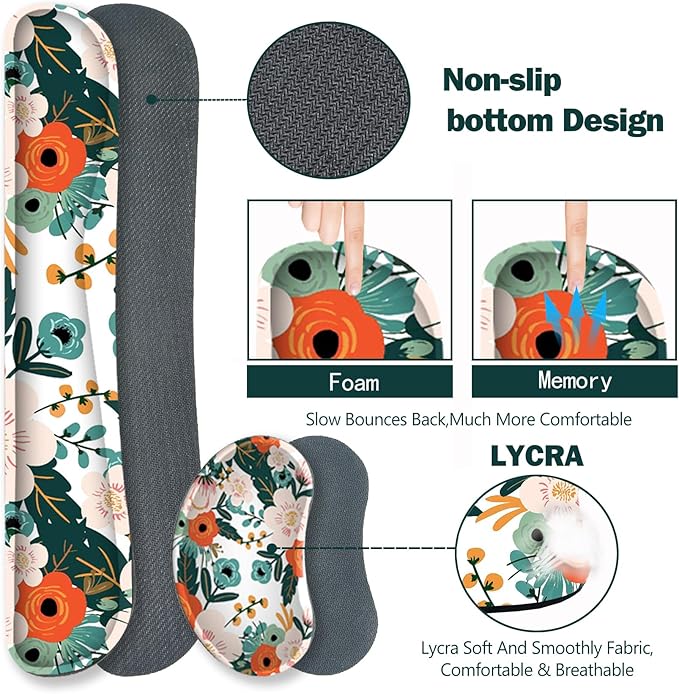 - 【Ergonomic Design】Designed with memory foam and soft smooth material to the pads, lightweight comfortable and durable for your daily work life. This gaming mouse pad wrist support set is contoured ergonomically to keep arms, wrists, and hands from getting sore while working and gaming for long periods of time, maximum reduce wrist stress and tiredness.