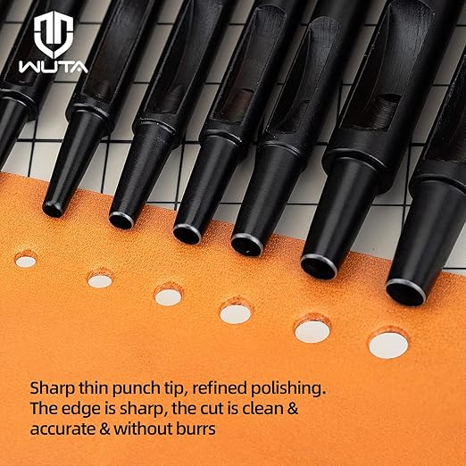 - 💎WUTA original design black round hollow punch cutter comes with carbon steel material, with a high-temperature treatment process, features in high hardness, sharpness, good tempering & round cutting edges.
