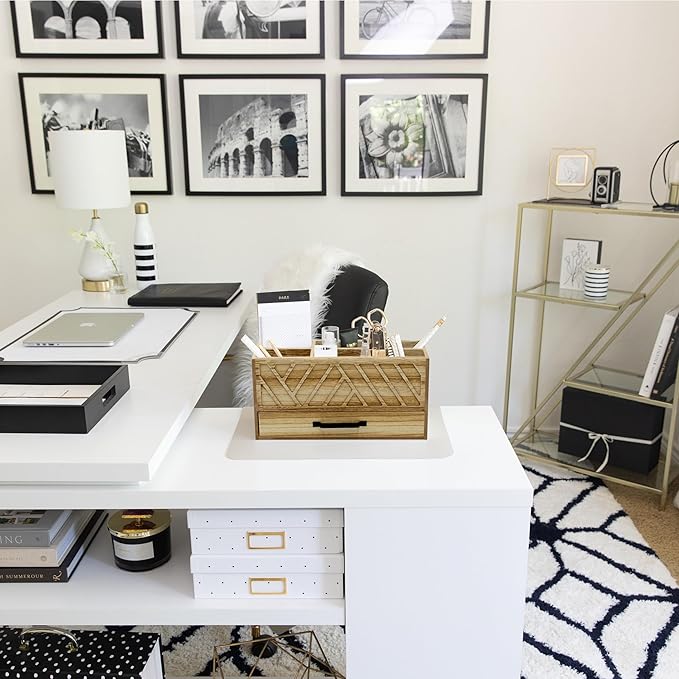 - Stay organized and clutter-free with our natural wood desktop pen organizer with drawer, the perfect pen holder for desk and versatile stationery organizer for art supplies, pencils, markers, and office supplies.