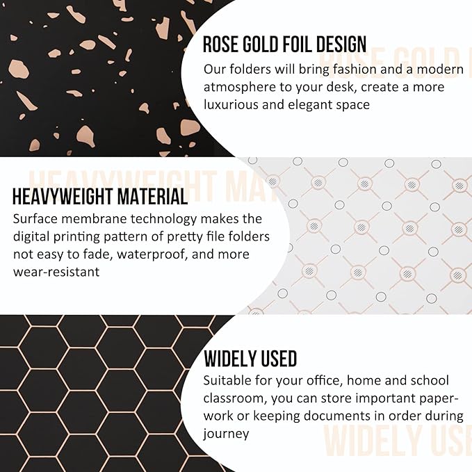 - Gold Foil Design - Unlike traditional file folder, our rose gold foil of cute file folder can match the gold desk organizer, and bring fashion and a modern atmosphere to your desk, create a more luxurious and elegant space