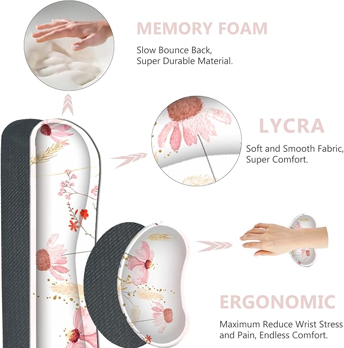 - 【ERGONOMIC DESIGN】: Keyboard wrist rest & mouse wrist support designed with comfortable memory foam and breathable material fabric, perfectly support your wrist while typing or sliding, minimizing relieve pressure and pain of your wrist, and maintaining wrist comfort and normal blood circulation.