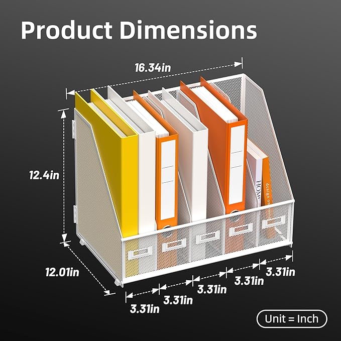 - Suitable for Binders: Standard binders can be well organized by this book organizer with its decent size (16.34 x 12.01 x 12.4 in). Let your 3 ring binders have their right storage place with our vertical file organizer.