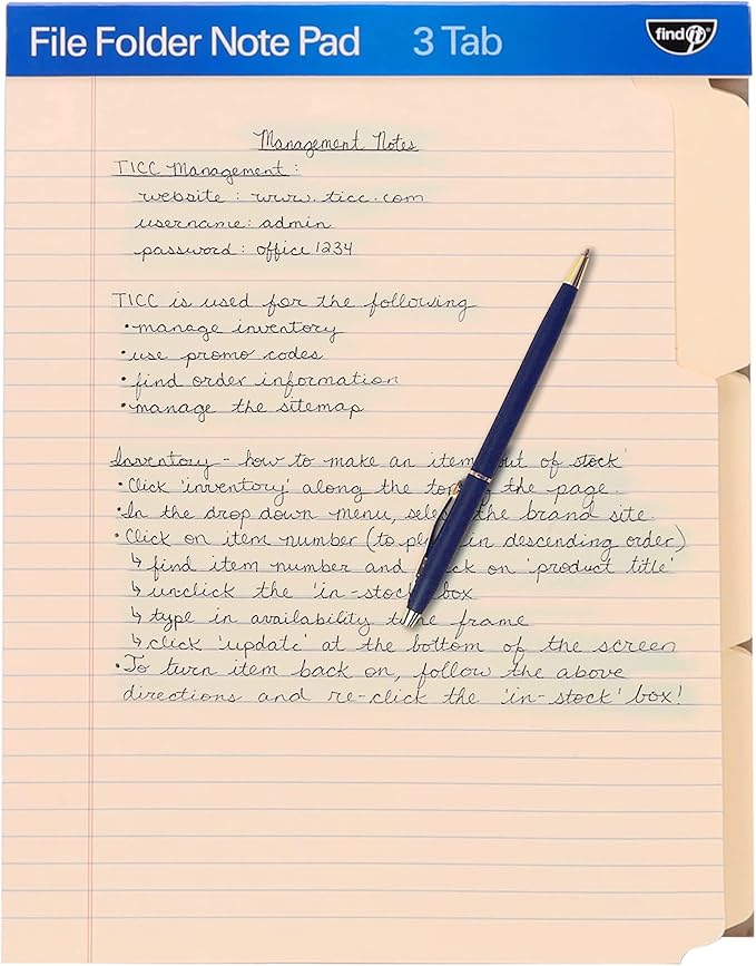 - WIDE RULED - The patented design of these notepad manila folders has changed the paper filing game forever. The wide-ruled pocket offers a place to keep your notes and documents in one place.