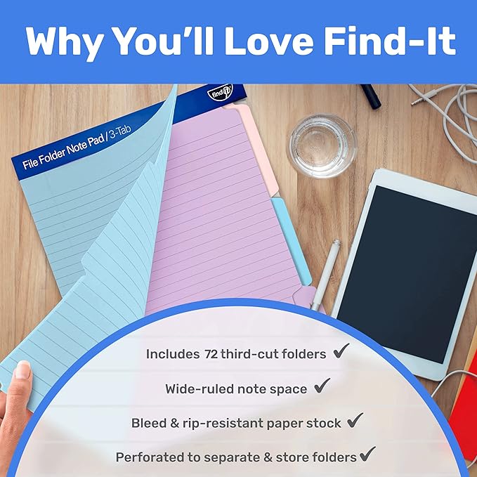 - 72 FOLDERS - Enjoy 72 pastel third-cut file cabinet folders in each pad. The perforated top allows you to simply tear and file your notes easily and efficiently.