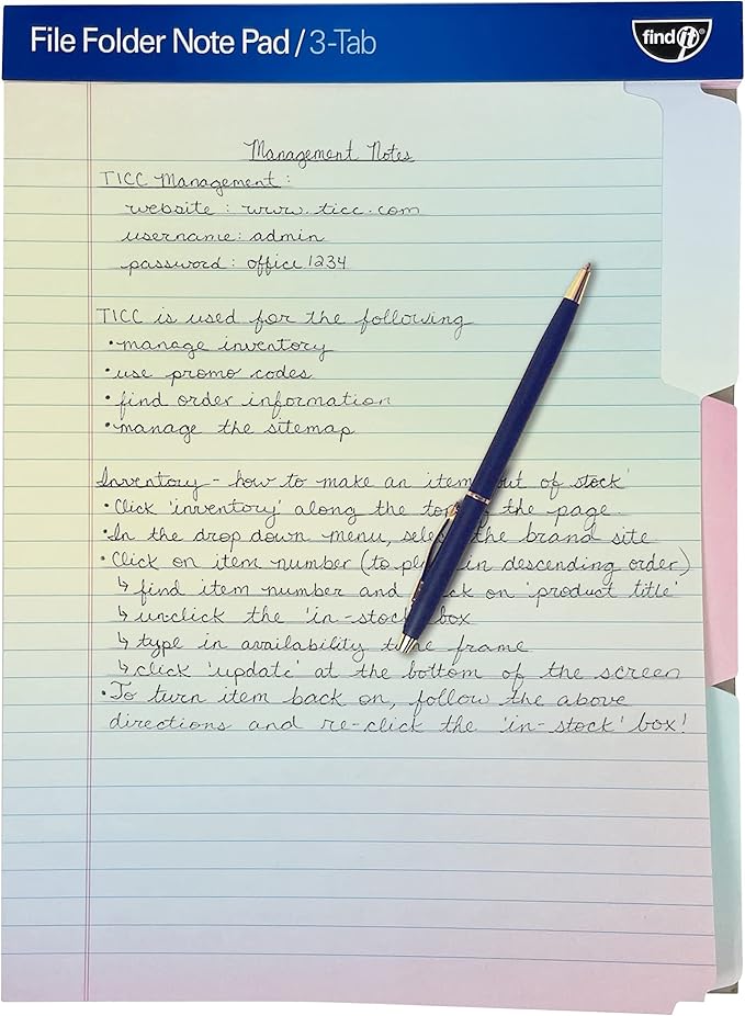 - WIDE RULED - The patented design of these notepad manila folders has changed the paper filing game forever. The wide-ruled pocket offers a place to keep your notes and documents in one place.