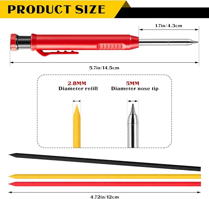 - Deep Hole Pencil: woodworking pencil features an extended 45 mm long nose, which allows you to work in areas where you are hard to reach, suitable for marking in deep holes or other tight areas, and the metal nib is sturdy enough, can be applied for a long time