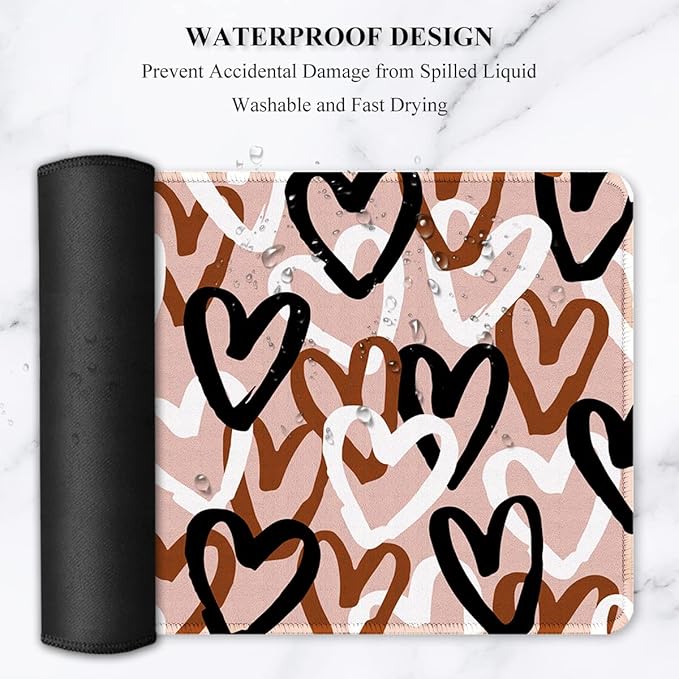 Auhoahsil Large Mouse Pad, XXL Desk Pad, Extened 35" x 15", Non-Slip Rubber Base, Stitched Edges, Superior Surface, Waterproof Keyboard Mat, Large Mousepad for Gamer, Office & Home, Brown Heart