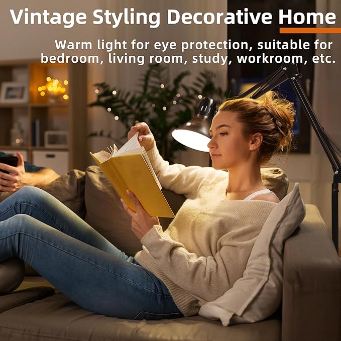 Desk Lamp for Home Office Eye-Caring Metal Extra Tall Swing Arm High Intensity Clamp Flexible Gooseneck w/A19 E26 LED Bulb Side Table Working Reading Architect Computer Workbench Puzzle Warm Light