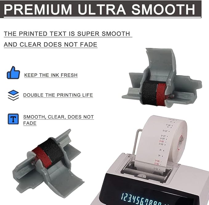 - Excellent quality - BOEDCN ir-40t calculator ribbon replacement for hr-100tm hr-150tm ink using advanced special ink and unique printing and dyeing technology, the printed text is super smooth and does not fade.This calculator ink roller provides vivid and consistent black and red color in addition to exceptional lightfastness and durable impressions.