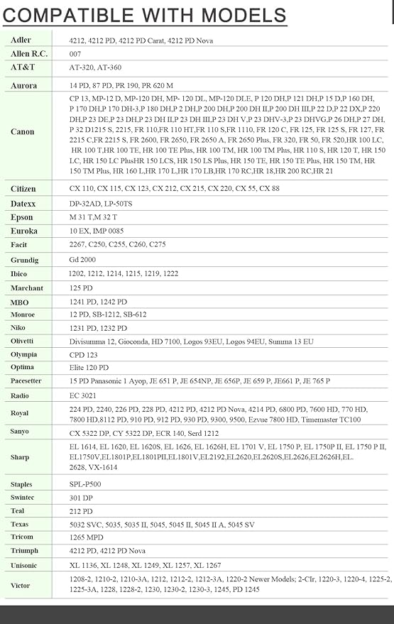 - Compatible with Models -Compatible with many other Canon Casio Sharp calculator models, hr100tm hr-170rc hr-150tm hr200rc hr-100lc d170-dh at-p2000 p170-dh p23dhv p26-dh iii p26-dh gr-100tm pr42 cp13 el-1750v el1801v at-p2000 nr42 mp11dx …… BOEDCN-IR40T Adopting sophisticated parts & after strict testing ensures these quality Ink Roller perfectly compatible with most printing calculators that use Ink Roller.