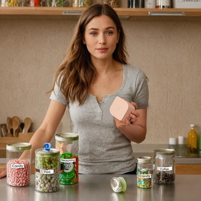 - Ideal for Home, Office and Small Business: Bluetooth label maker utilizes thermal and thermal transfer technology to enjoy high-definition printing without ink or toner. Mini label printer are BPA-free can make brightly colored paper labels, labels are waterproof, oil proof, scratch proof and tear proof, in addition to support printing on ribbon labels, customize different gift packages for your friends with different holiday designs for more uniqueness. Ideal for kitchen, party, pantry, garden, garage, tools, home and office organization. (Tip: When replacing new labels, please pull out the paper about 5 mm to avoid paper jam)