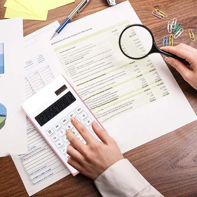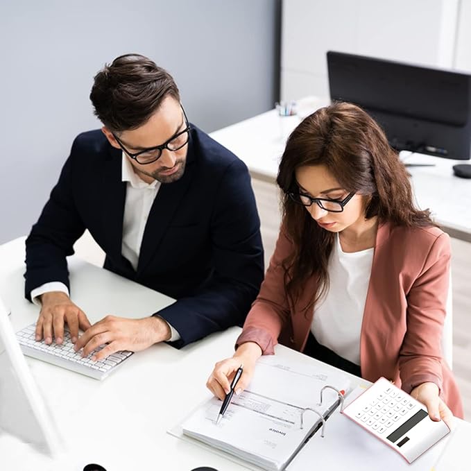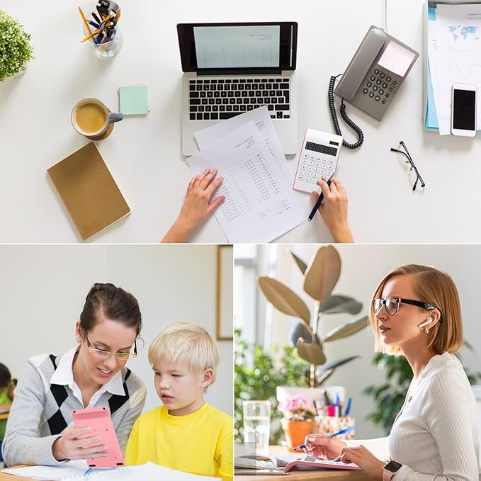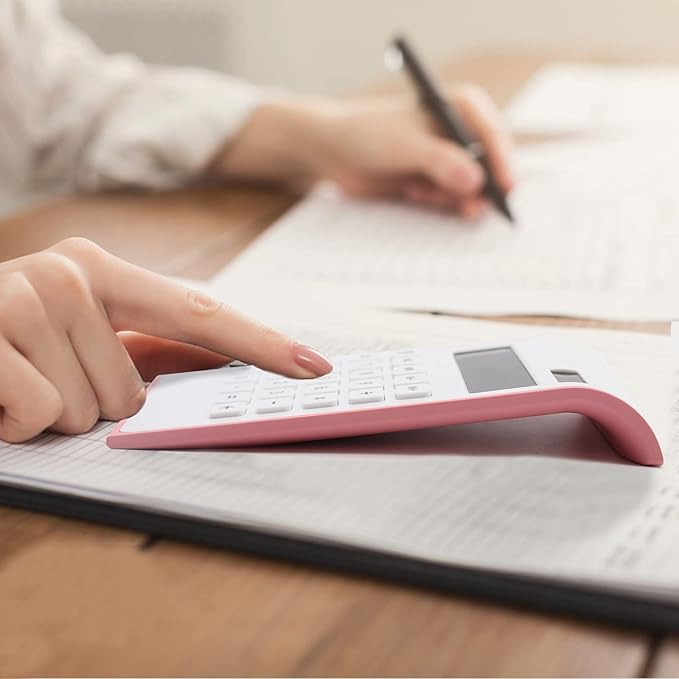 - Quality & Appearance- Calculator large display for women is made of durable ABS to ensure normal daily use; The Elegant and slim design and reasonable button layout make it beautiful and practical, perfect size, fits right on the desk and does all you need in a tight spot.