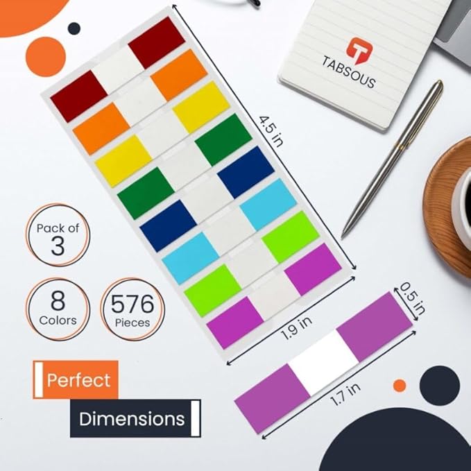 - 📚 Perfect for Students & Professionals: Organize textbooks, mark meeting notes, or classify office files. Includes 576 tabs- enough for 50+ books or a year of projects!
